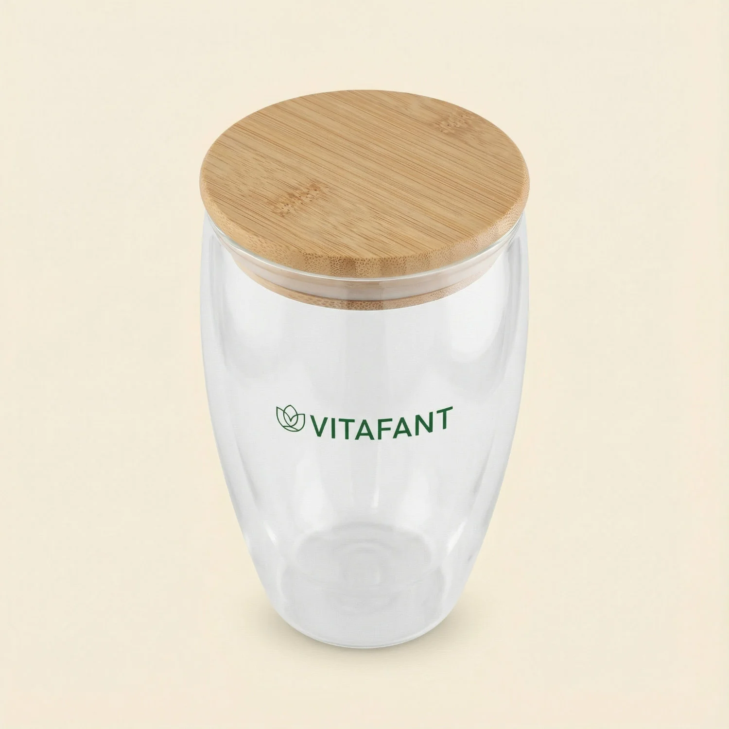 Doppelwandiges Glas + Bambus Deckel