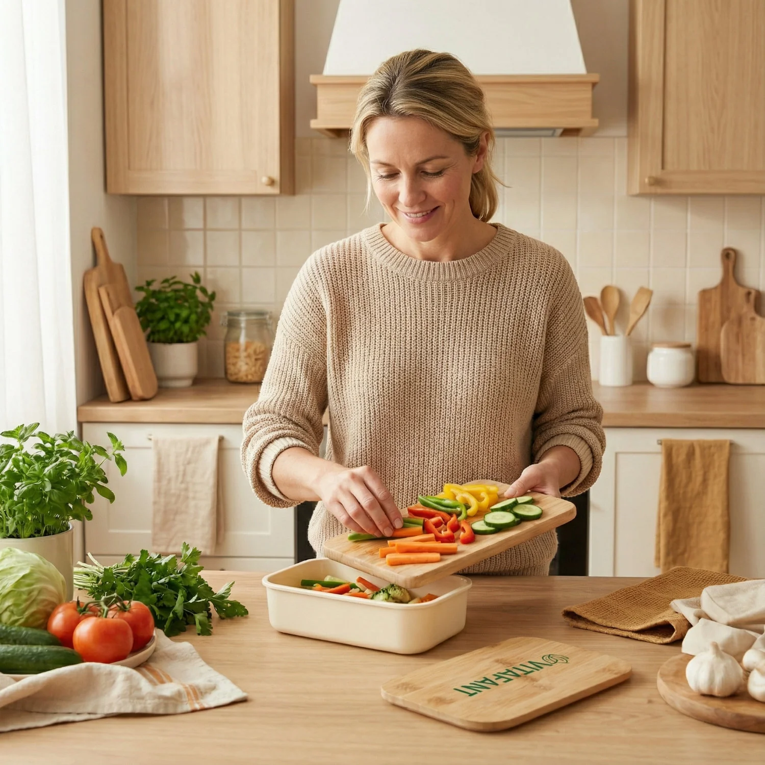 Der natürliche Bambusdeckel verleiht der Dose einen warmen, modernen Look – perfekt für alle, die eine einfache und langlebige Lösung für unterwegs suchen.